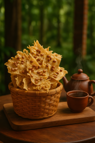 Homemade Peyek Kacang is the perfect companion for a cup of warm tea. Made from quality ingredients and fried to golden perfection, every bites bring a taste of tradition and comfort.
