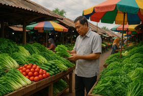 Traditional market in Indonesia, filled with fresh produce and bustling with activity.